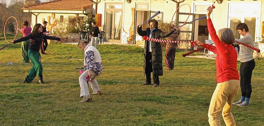 Ganz nebenbei werden Bauch-, Bein-, und Pomuskeln spürbar massiert und trainiert, Rücken Arme und Beine gestärkt, Herz- und Kreislauf mit Freude angeregt sowie linke und rechte Körperhälften in Balance gebracht! Wir treffen uns zum HoopTanz, nutzen unsere bunten Hoops schon bei unseren Aufwärmübungen und vertiefen dann verschiedene Techniken - bis wir unseren eigenen Tanz mit dem Hoop kreiieren können! Anfänger und Fortgeschrittene allen Alters können bei jedem Treffen Neues dazulernen. Die Termine sind so aufgebaut, dass sie als Serie oder einzeln wahrgenommen werden können. Bitte bringen Sie wenn möglich Ihren eigenen Hoop mit ! Ansonsten können bei mir Hoops geliehen oder gekauft werden. Sollten Sie Interesse an einem individuell für Sie passenden Hoop haben, wenden Sie sich bitte an mich. Vorherige telefonische Anmeldung oder durch email (s.u.) ist aus organisatorischen Gründen wichtig! Wenn erwünscht, hinterlassen Sie im Falle von Wetterwechsel Ihre Handynummer, dass ich Sie nötigenfalls auch noch kurzfristig über ev. Änderungen informieren kann. Danke!
